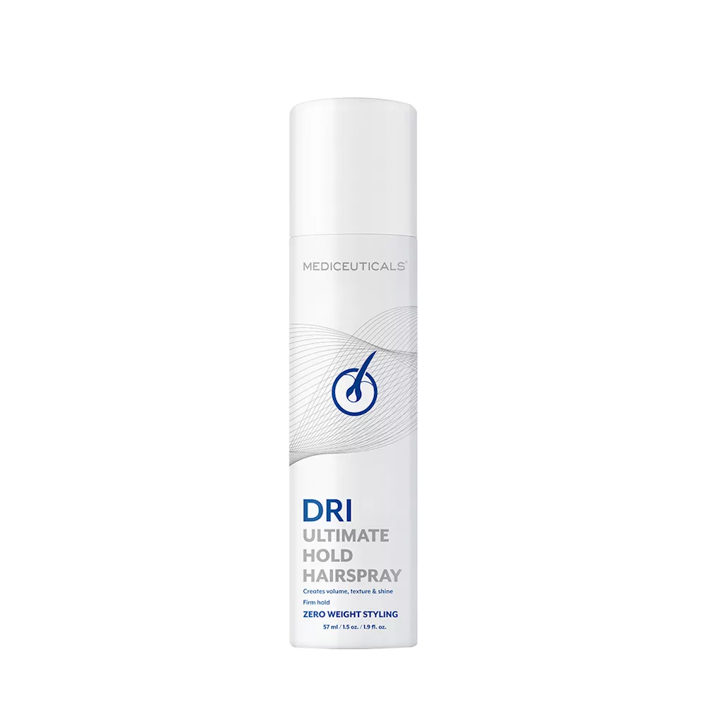De Mediceuticals Dri Ultimate Hold Hairspray biedt een ultrasterke hold met langdurige glans. Dankzij climate control blijft uw kapsel perfect in model, ongeacht de weersomstandigheden. Sneldrogend, makkelijk uitborstelbaar en met UV-bescherming.