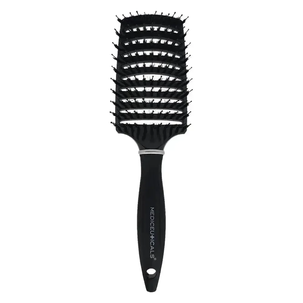 De Mediceuticals Scalpro Haarborstel ontwart het haar pijnloos en zonder beschadiging. Dankzij siliconen pinnen en wilde zwijnenharen wordt de hoofdhuid beschermd en gemasseerd. Ideaal voor alle haartypes, ook bij een gevoelige hoofdhuid en voor kinderen.