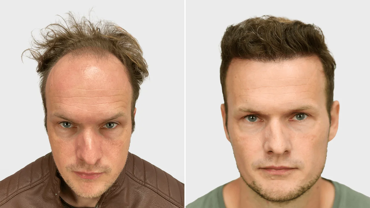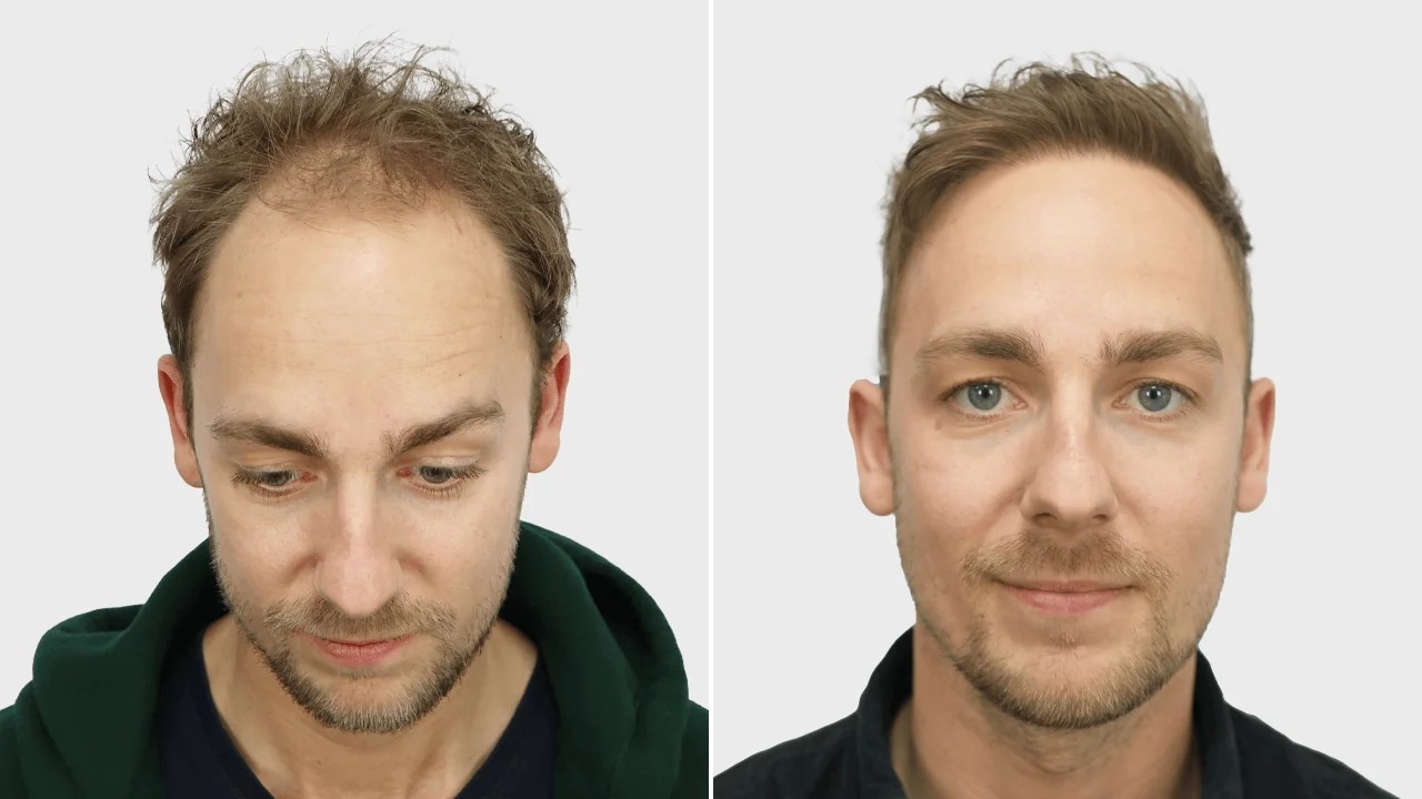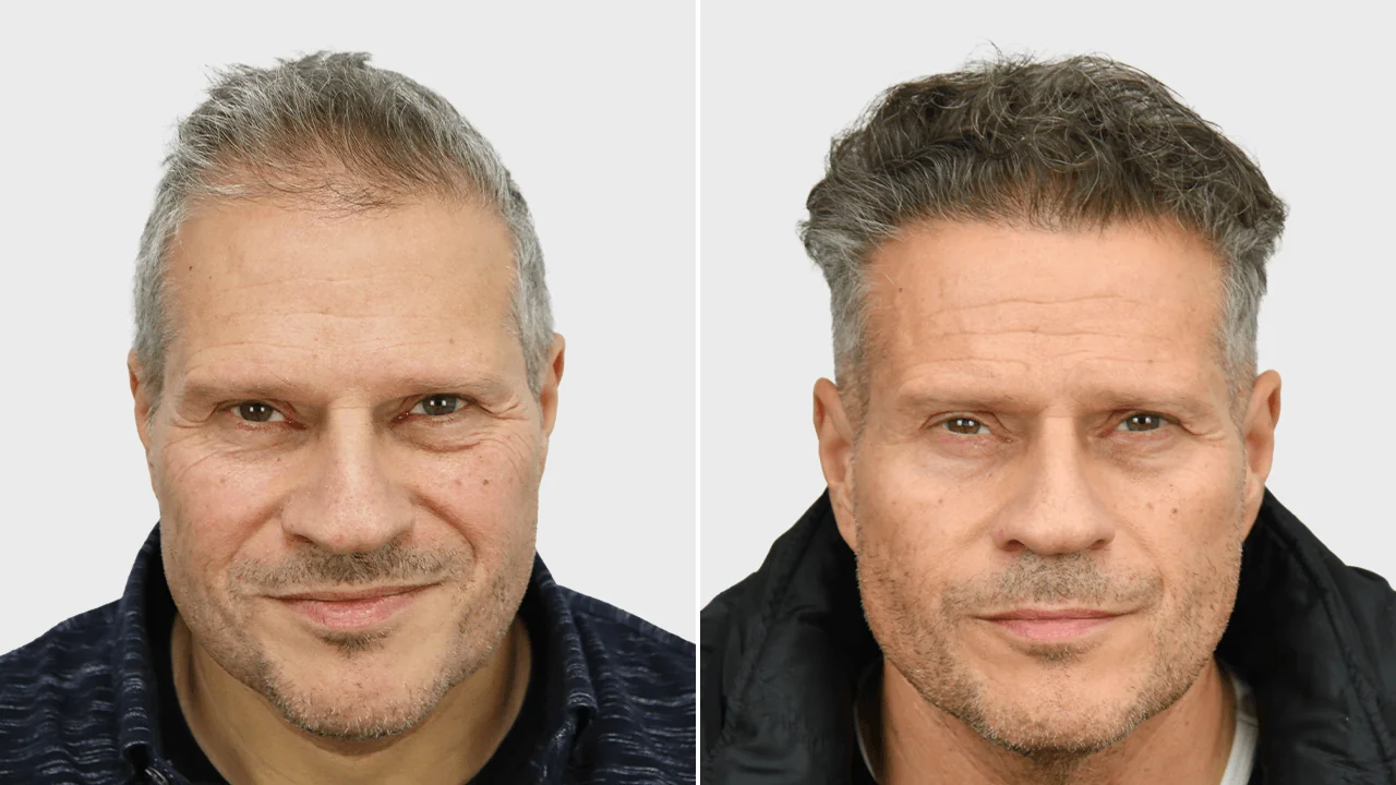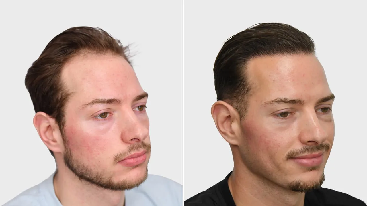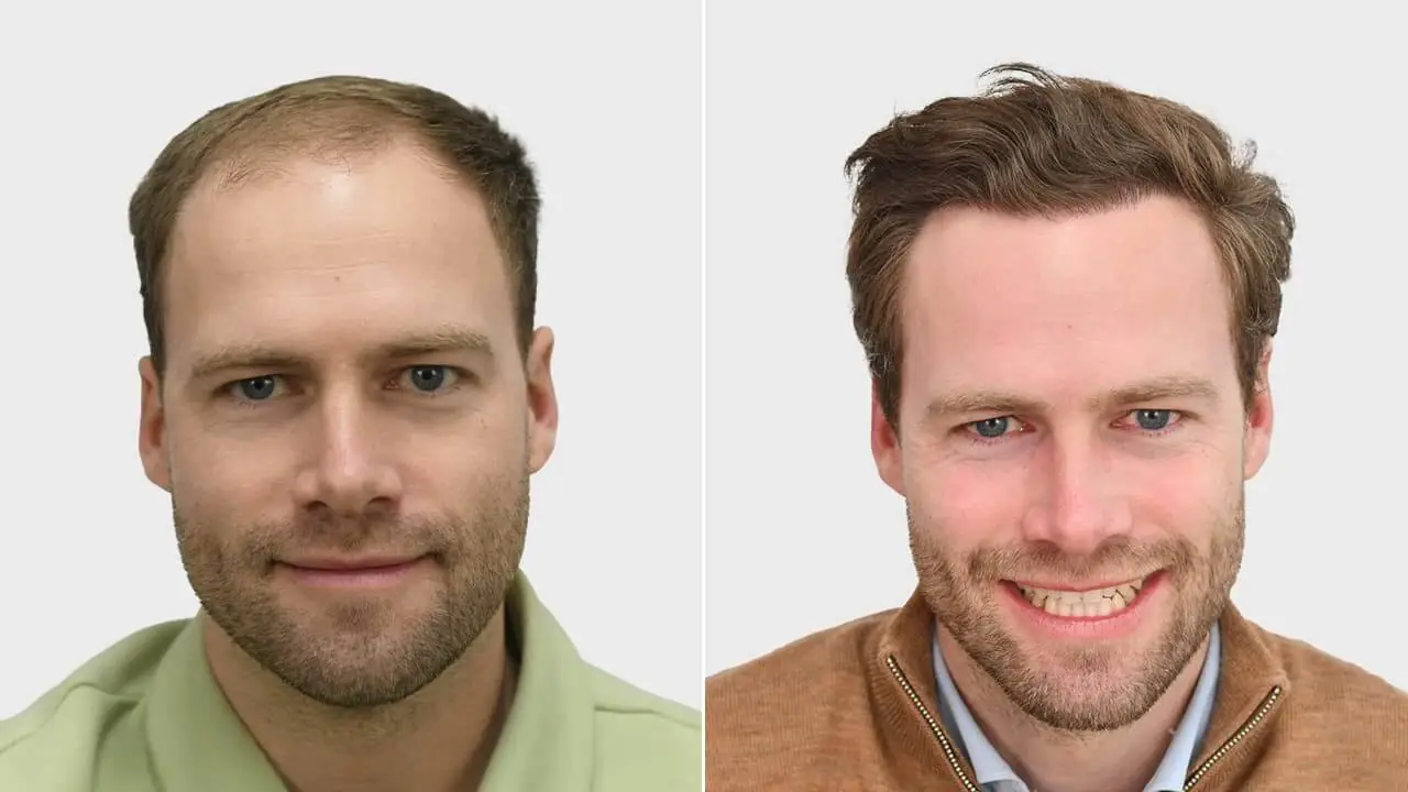 Voor en na DHI resultaten bij mannen tonen een duidelijke verbetering in de haardichtheid, vooral bij inhammen en kale kruinen. Mannen kiezen vaak voor deze techniek vanwege de precisie en het ontbreken van zichtbare littekens.
