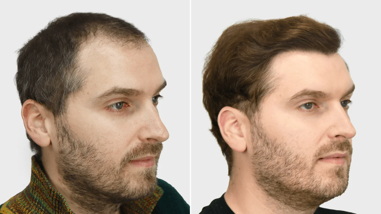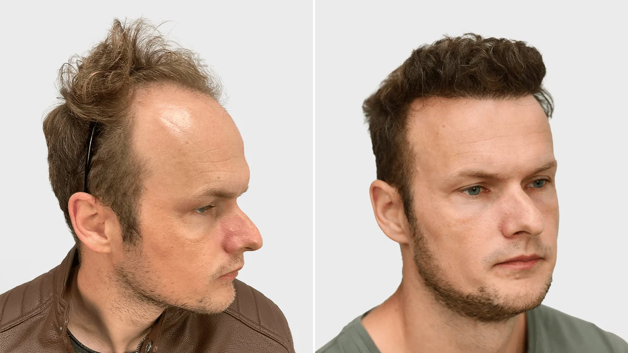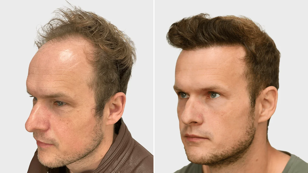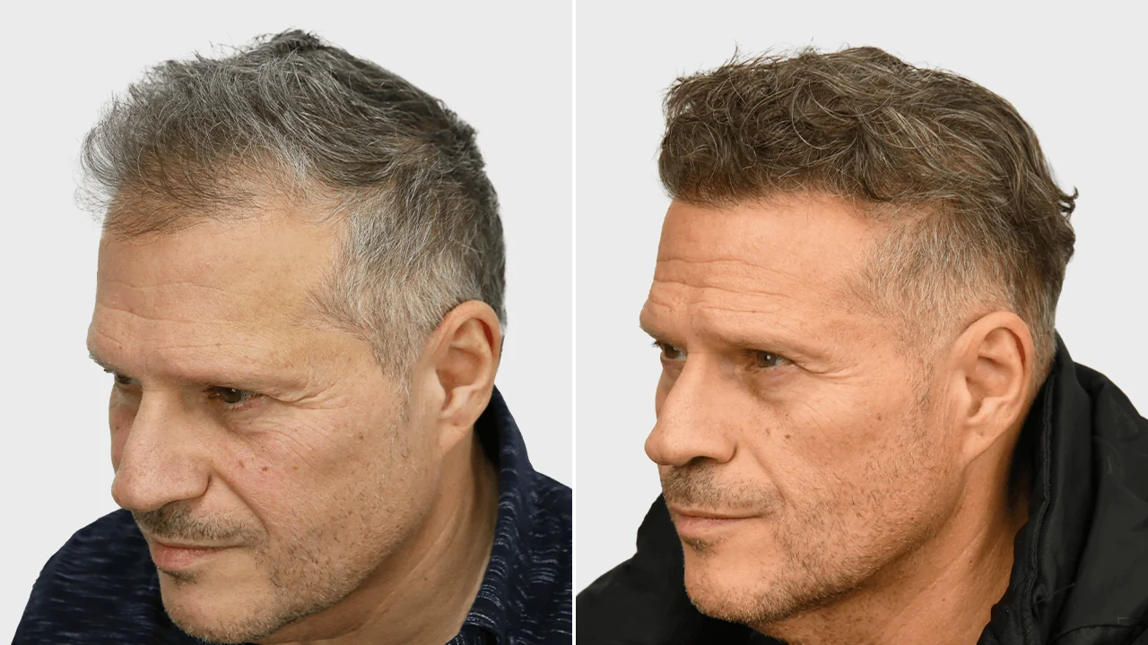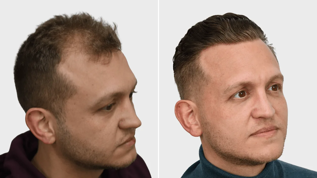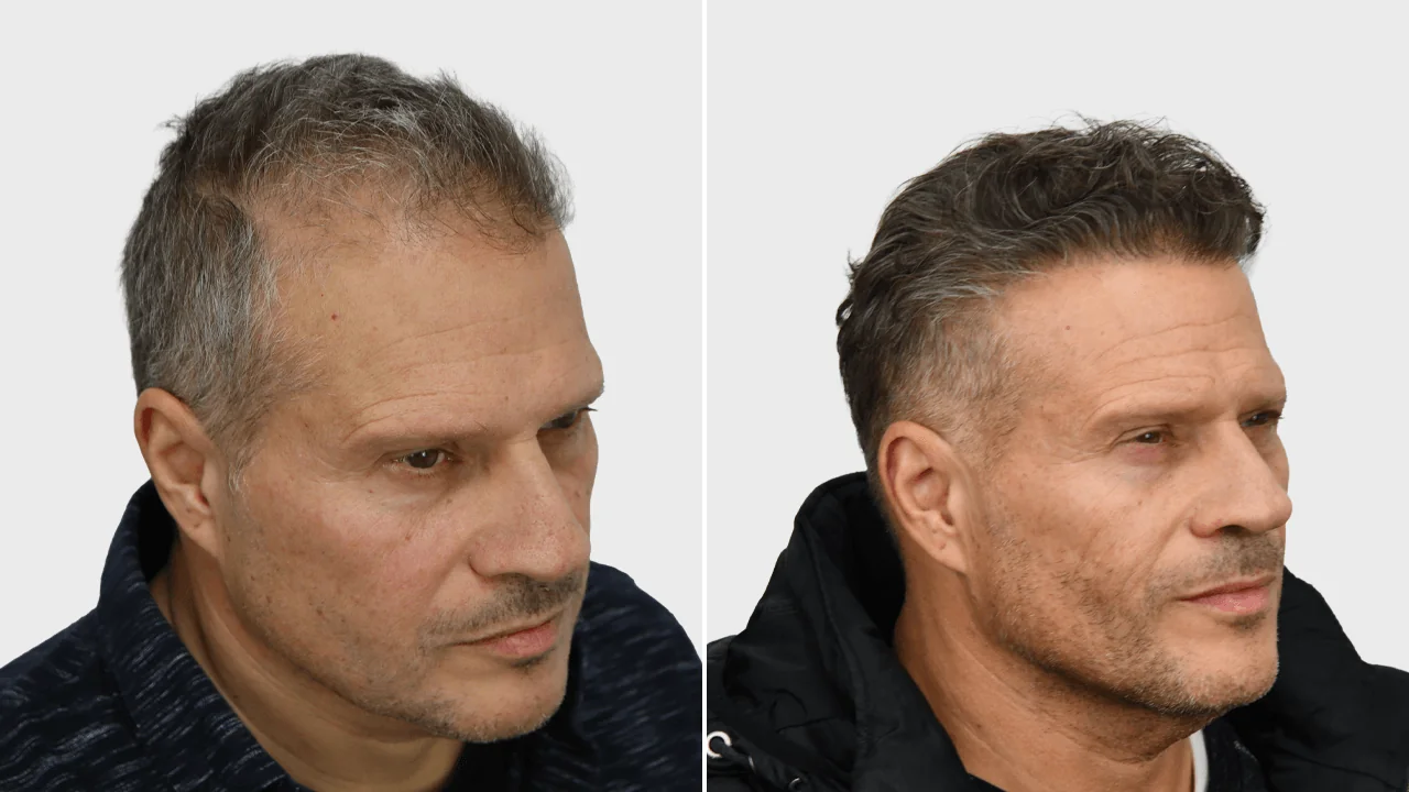 Voor en na DHI resultaten bij mannen tonen een duidelijke verbetering in de haardichtheid, vooral bij inhammen en kale kruinen. Mannen kiezen vaak voor deze techniek vanwege de precisie en het ontbreken van zichtbare littekens.