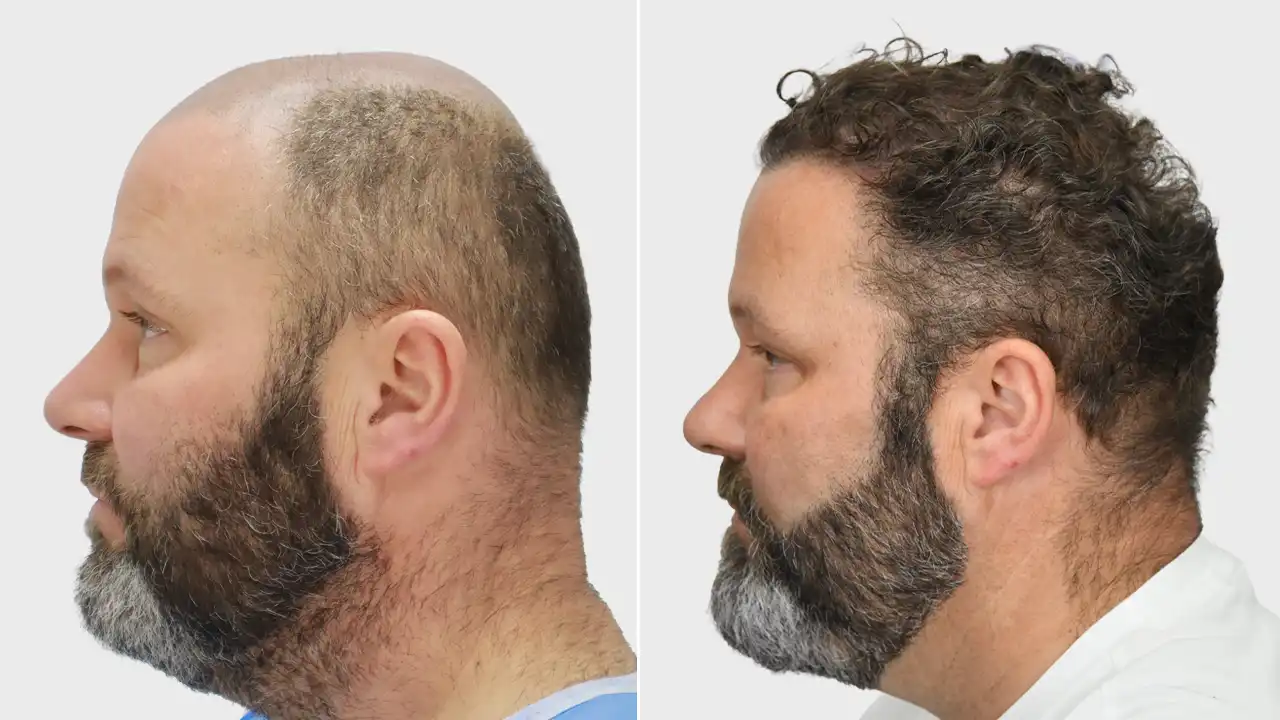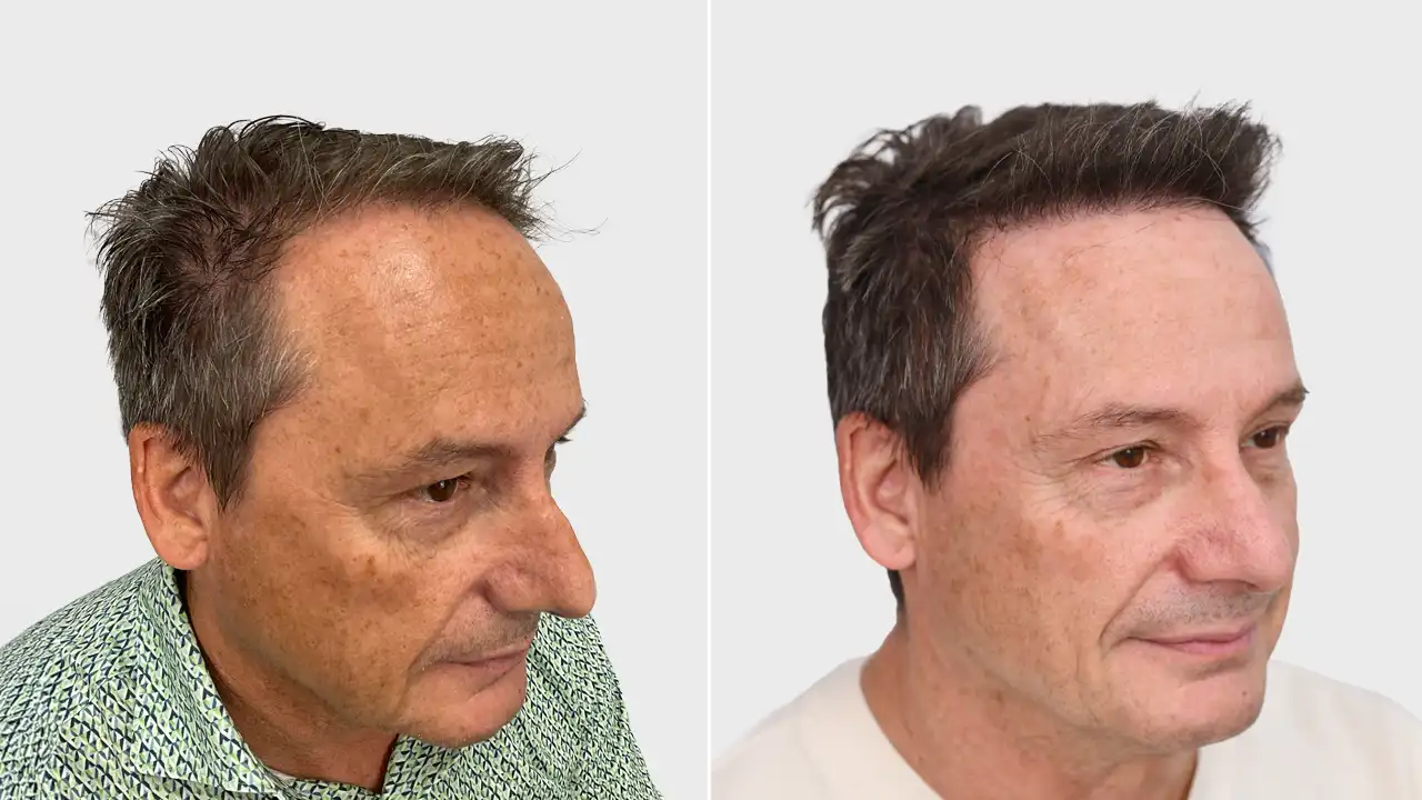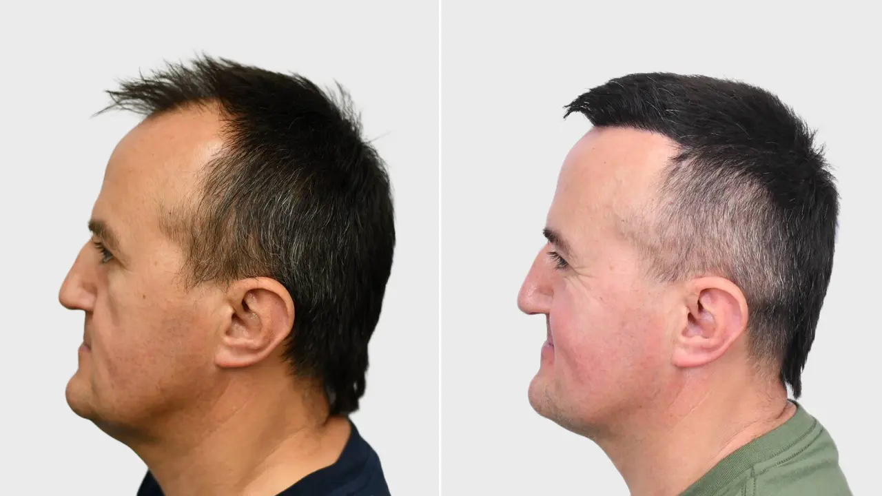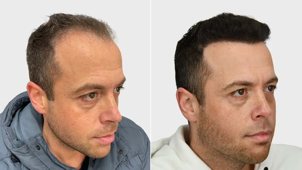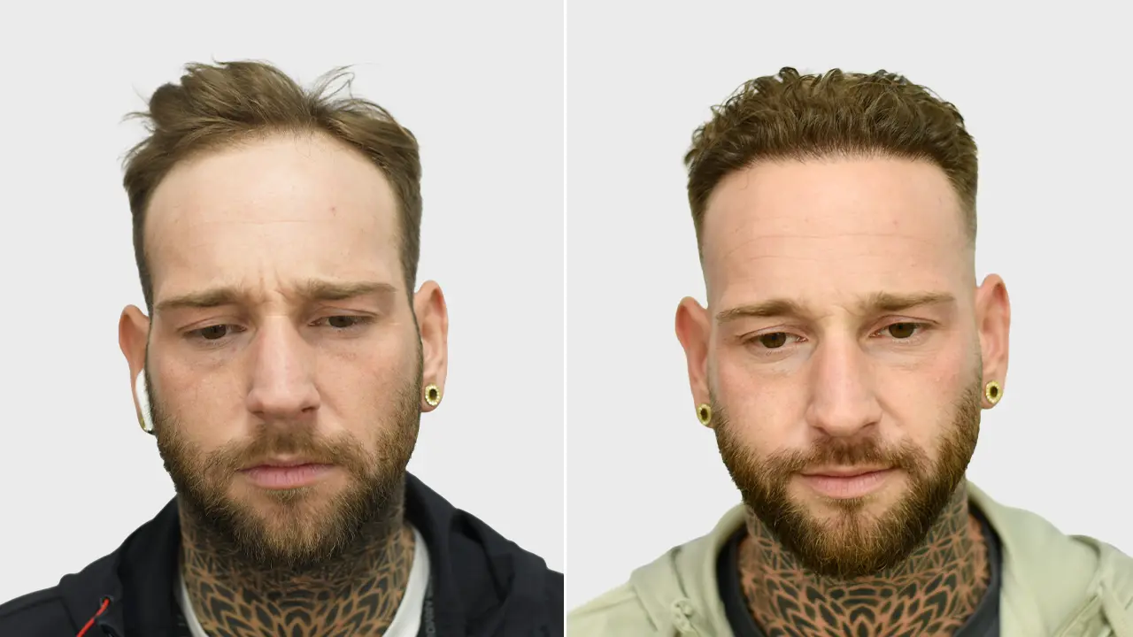 Voor en na DHI resultaten bij mannen tonen een duidelijke verbetering in de haardichtheid, vooral bij inhammen en kale kruinen. Mannen kiezen vaak voor deze techniek vanwege de precisie en het ontbreken van zichtbare littekens.