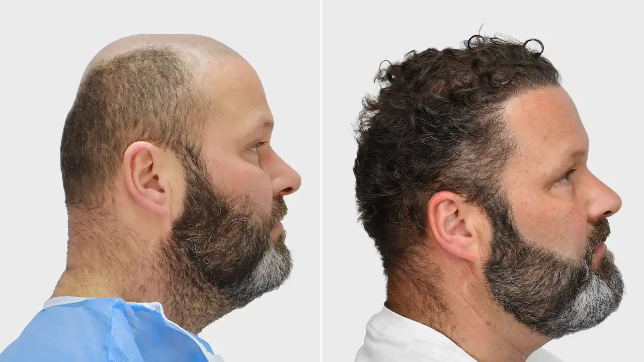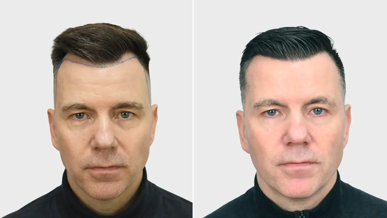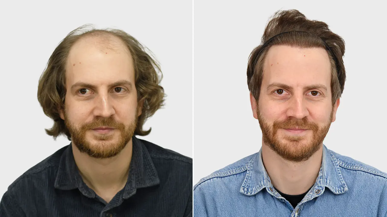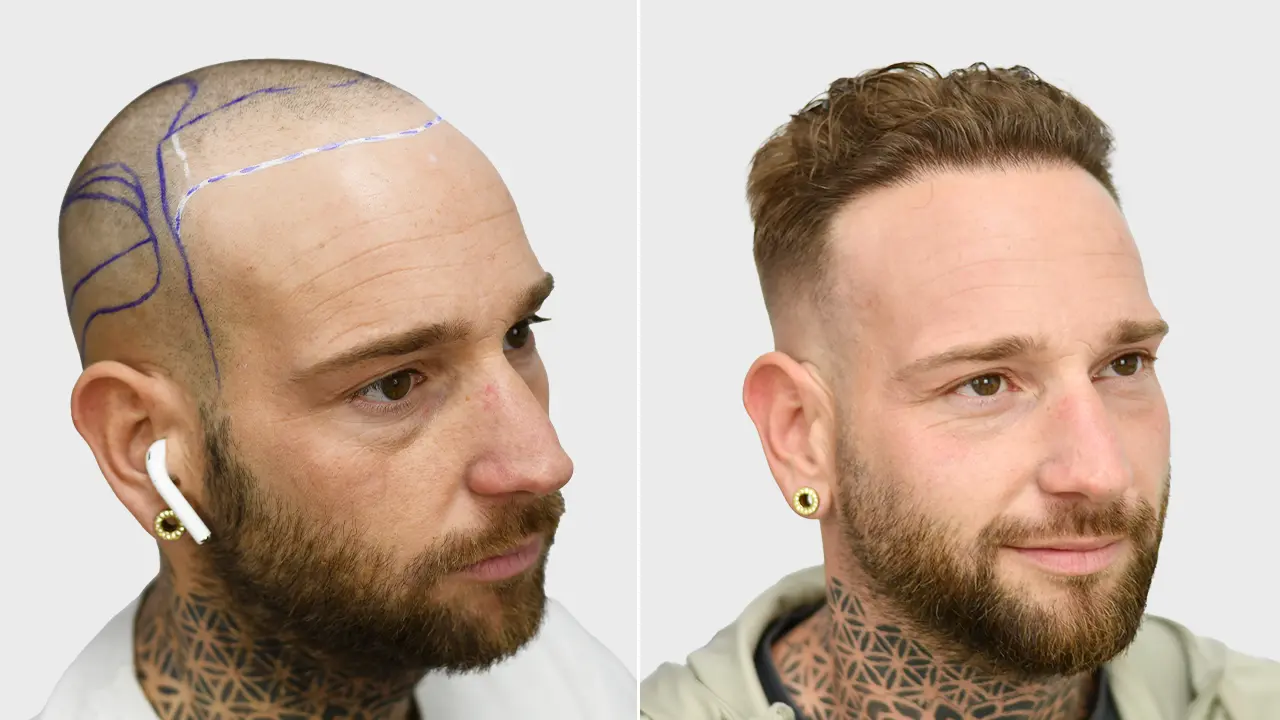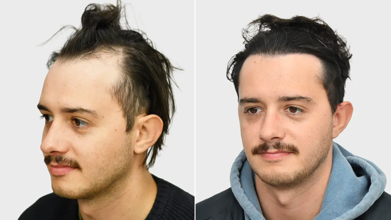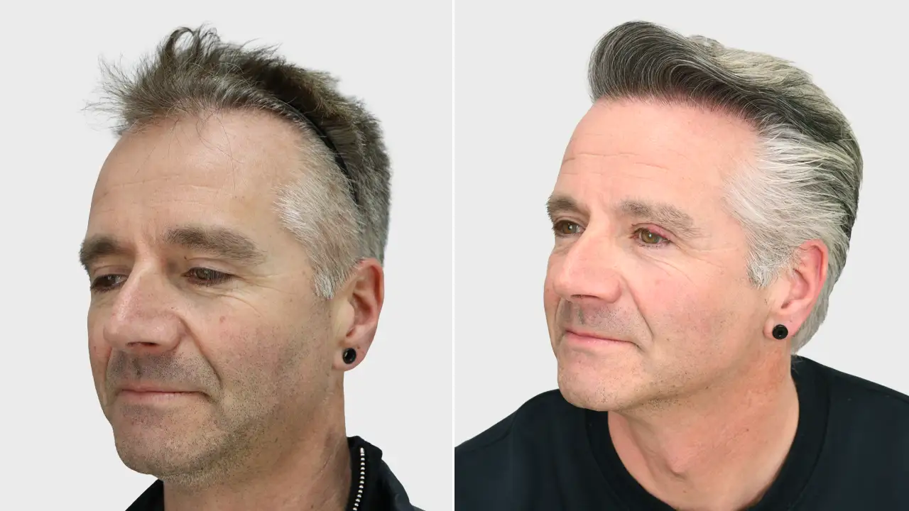 Voor en na DHI resultaten bij mannen tonen een duidelijke verbetering in de haardichtheid, vooral bij inhammen en kale kruinen. Mannen kiezen vaak voor deze techniek vanwege de precisie en het ontbreken van zichtbare littekens.