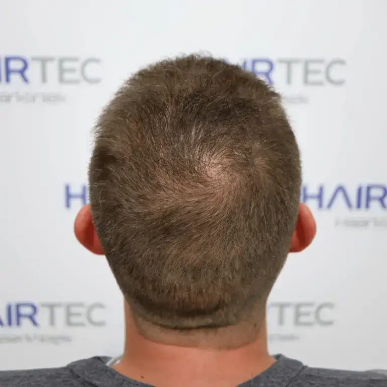 Op de foto voor de haartransplantatie is goed te zien dat Dave nog redelijk veel haar had in het te opereren gebied, op en rond de kruin. Om te voorkomen dat bestaande haarfollikels niet door een haartransplantatie beschadigd raken is het essentieel om heel zorgvuldig te implanteren. Er is daarom door Dave voor de DHI methode gekozen. Bij deze techniek worden de haarfollikels (grafts) direct in de hoofdhuid geplaatst, zonder dat er incisies in de hoofdhuid worden gemaakt. Daarmee wordt mogelijke nevenschade aan de bestaande haarfollikels voorkomen en is er ook sprake van sneller van de hoofdhuid en het bloedvatenstelsel. Het effect daarvan is na zes maanden al mooi zichtbaar.